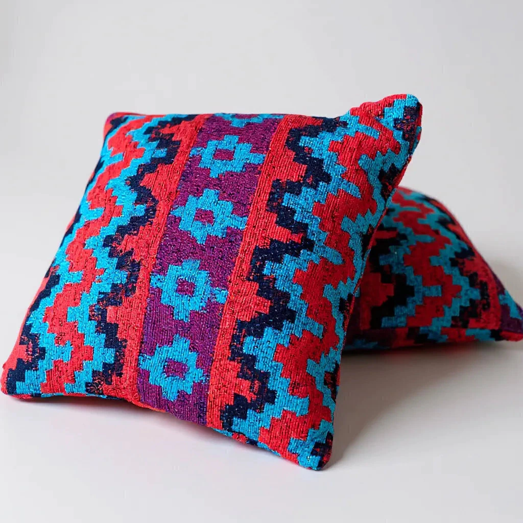 Funda de almohadon de jacquard confeccionado con materia prima artesanal. Se trata de una tela de jacquard de produccion nacional.
