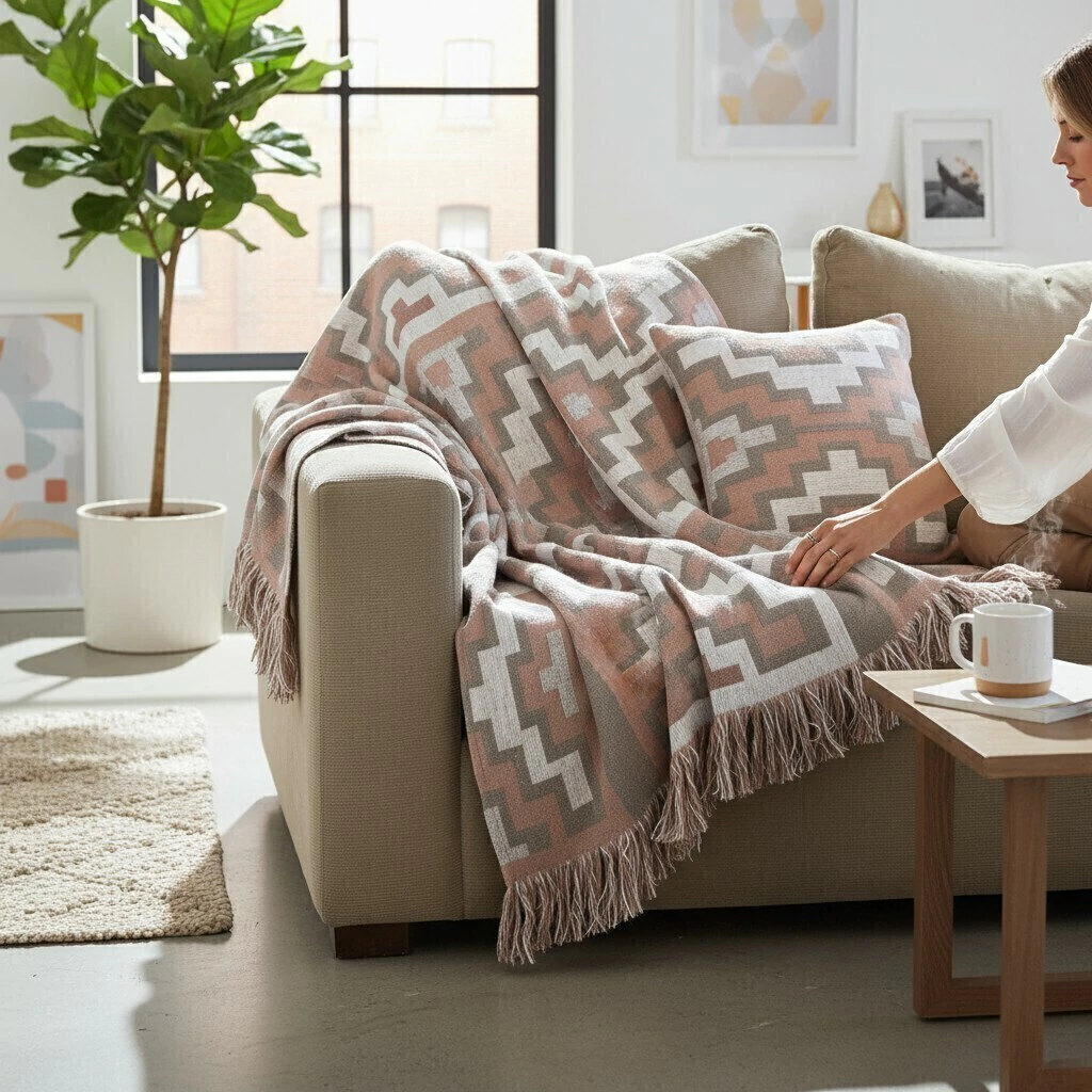 En esta publicación, te presentamos nuestra Manta de Jacquard Tikuan Nude, confeccionada con materia prima artesanal y producción nacional. Esta manta es ideal para quienes buscan un toque distintivo en su decoración, ya que la tela de Jacquard se caracteriza por su textura única y su mantenimiento en tonos pastel suaves.