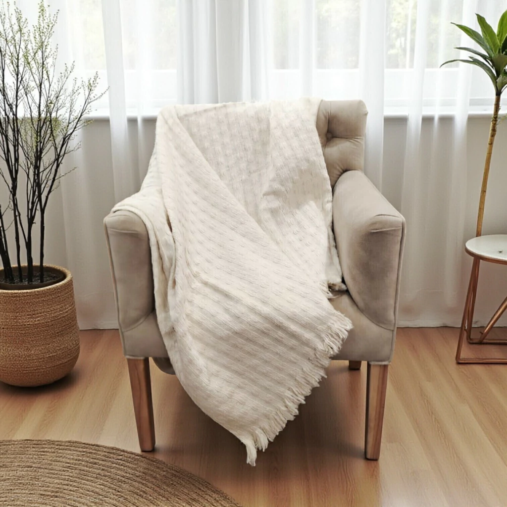 Manta de jacquard confeccionada con materia prima artesanal. Se trata de una tela de jacquard de produccion nacional.